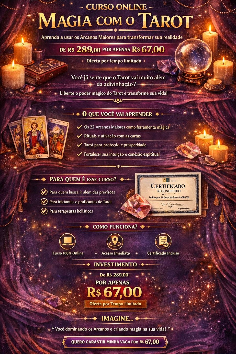 Desenvolva sua Espiritualidade com cursos da nossa escola. Conteúdo: Assista no seu celular, tablet ou computador. Certificados: Todos os cursos com certificado reconhecido pela ABRATH - Associação Brasileira dos Terapeutas Holísticos. Videoaulas: A maneira mais prática e rápida de aprender. Tira Dúvidas: Espaço para tirar dúvidas com o professor. Faça nossos cursos: Eleve sua autoestima, desenvolva novos talentos e melhore sua qualidade de vida.